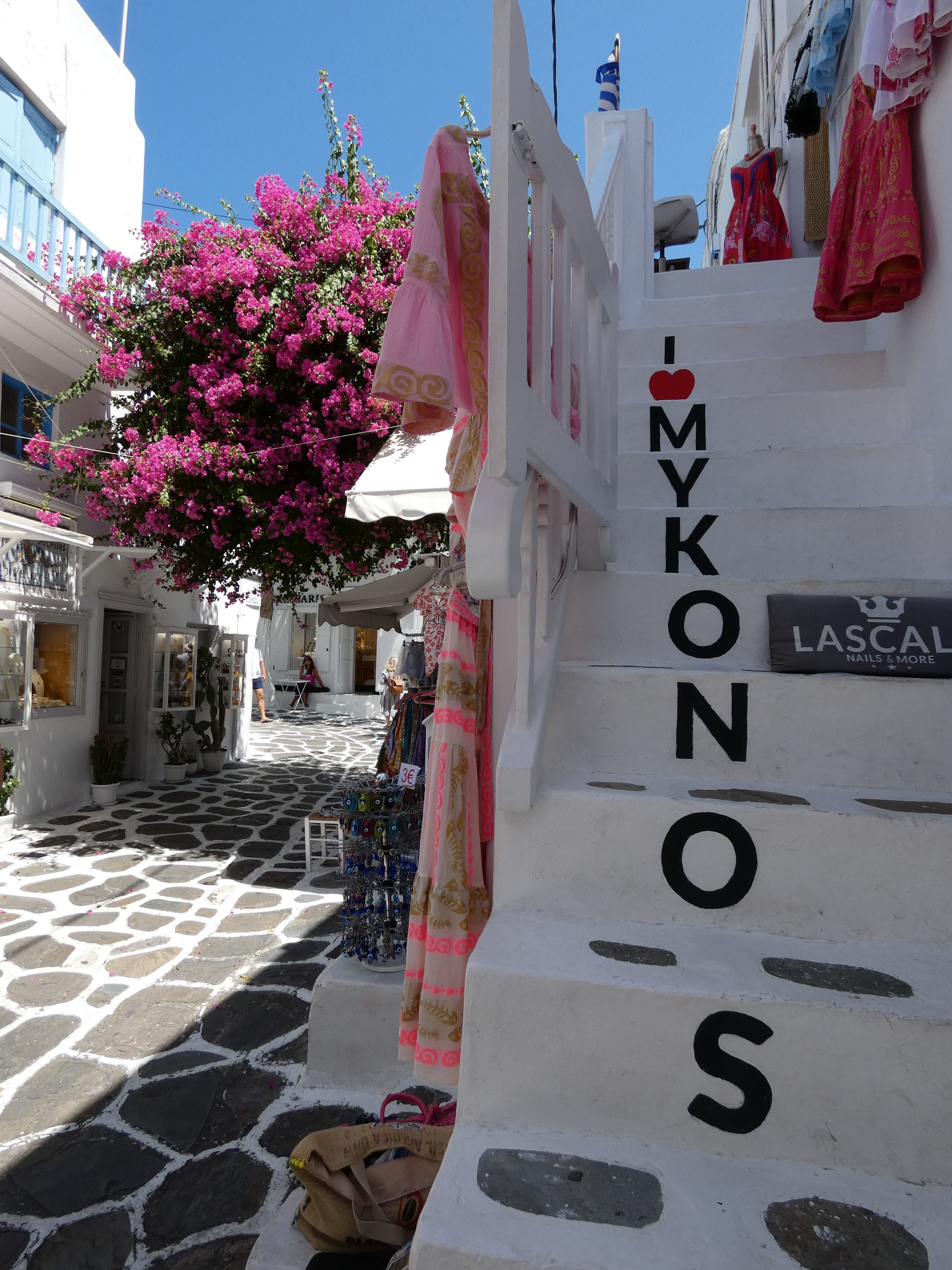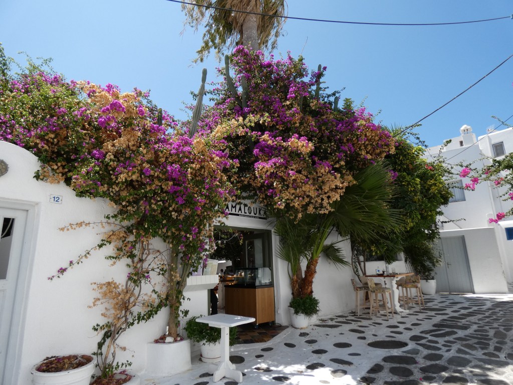 Kastro’s Restaurant is where you can snap the picture of the famous alley with the Aegean sea!